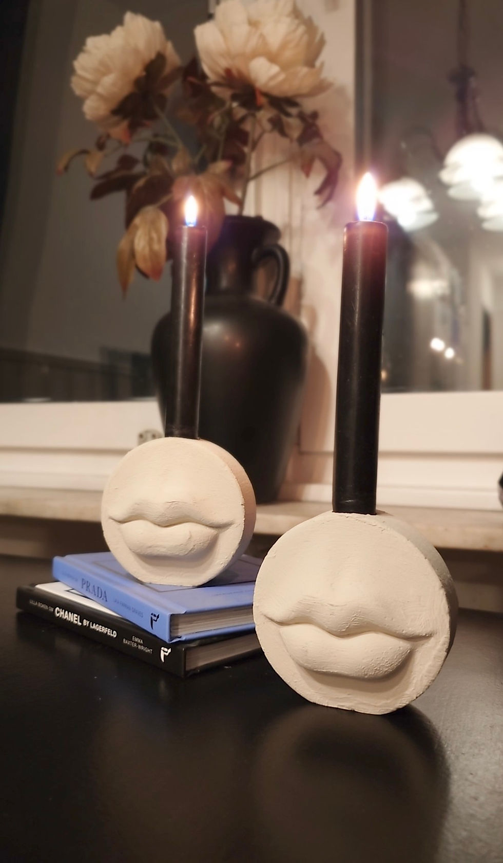 Stilren rökelse hållare gjort av betong, struktur målad i två jordnära kulörer, beige & matt brun.
